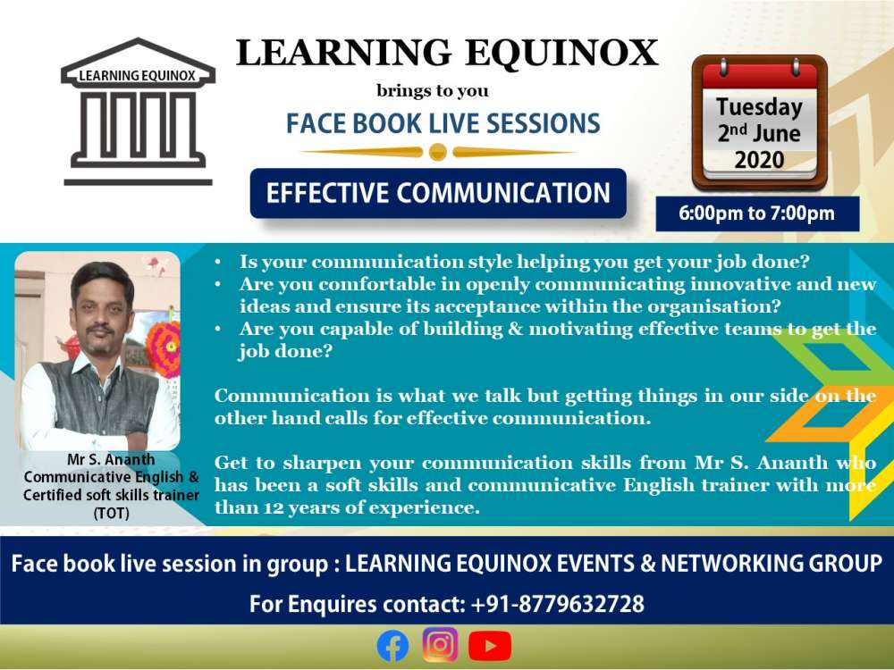 Facebook Live Session on EFFECTIVE COMMUNICATION on LEARNING EQUINOX EVENTS N NETWORKING GROUP