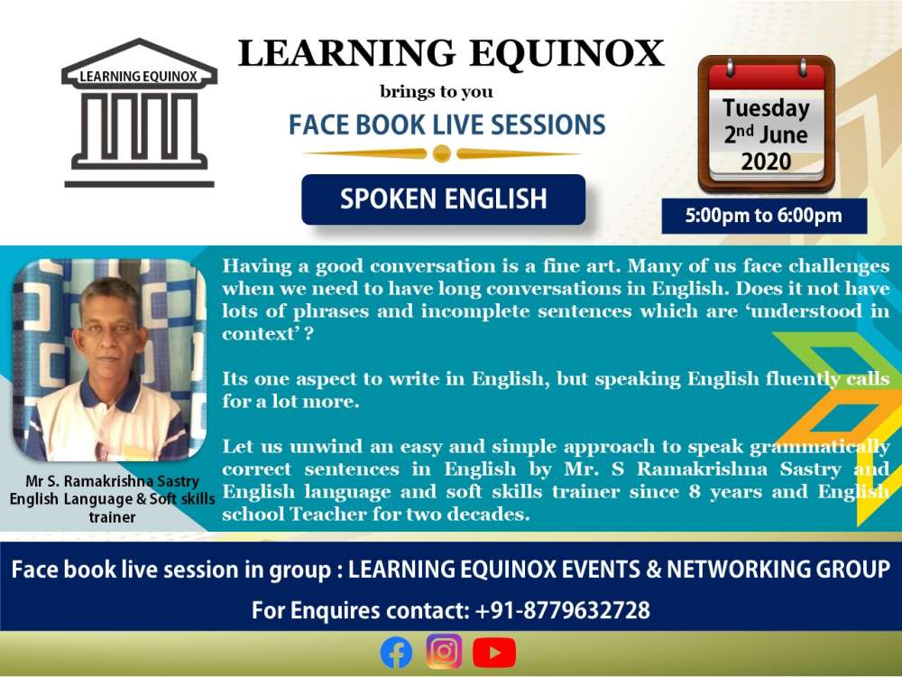 Facebook Live Session on SPOKEN ENGLISH on LEARNING EQUINOX EVENTS N NETWORKING GROUP