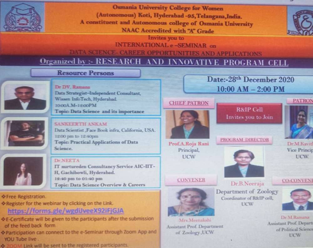 Learn and get inspired to learn Data Science by experts. Get introduced to Data science concept, practical utility and applications as well as how to take up Career in Data Science and about online course available to make you ready for the igniting career. To join the webinar on 28th Dec 10 am-2 Pm register https://forms.gle/wgdiJveeX92iFjGJA