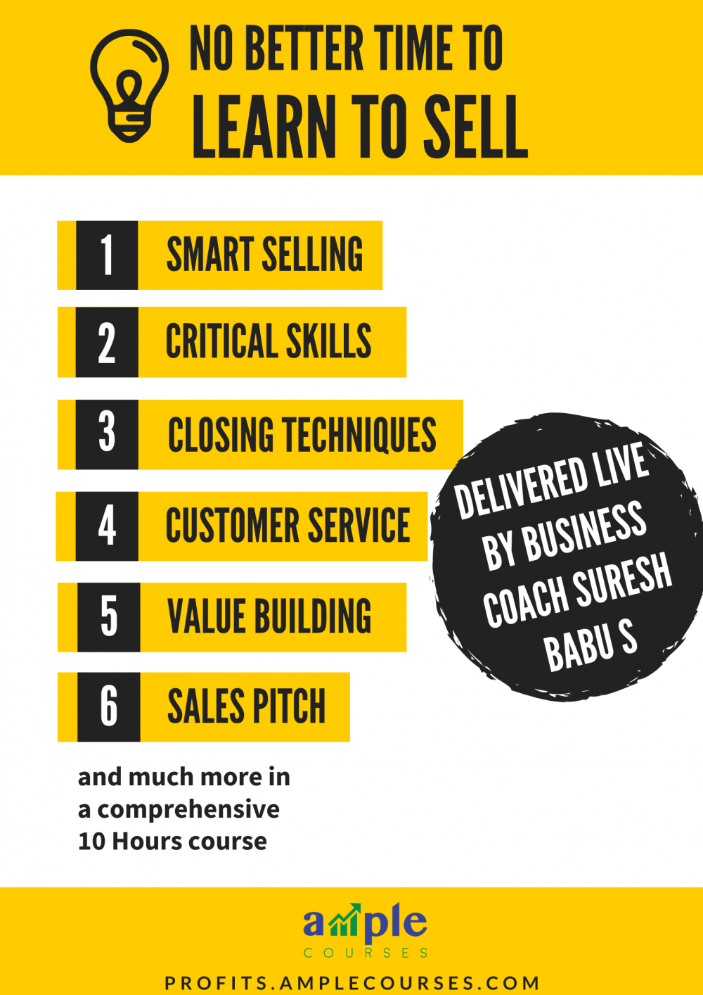 Do You Want to 1. Master Your Selling Skills? 2. Master Your Income? 3. Master Your destiny? If Yes...... Here is an invitation, an opportunity to learn & start earning from Day One! Did you know that rapport building is an integral part of selling? Do you know sales is a Process and System? Design one for self Join NOW and master the Art & Science of Selling. You will learn - ?? How to Sell your products and services, with Ease. ?? Effective Sales Process for Massive Profits ?? Prepare Magnetic Sales Pitch and present too ?? Power of AIDA Model to increase sales ?? Value Creation and its Importance ?? Negotiation Skills for Results ?? 5 Must know Secrets about Digital Marketing and Online Sales