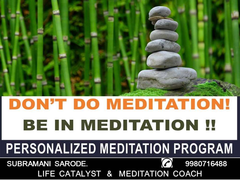 The unique feature of his meditation coaching is a facilitation that leads to FREEDOM TO MEDITATE ANY TIME, AT ANY PLACE AND IN ANY SITUATION. Being in meditation is the basis for enhancing emotional intelligence, creativity, leadership development, goal setting, goal achieving, stress management, relationship management and time management, understanding law of attraction and so on….! Another speciality is anyone can learn to be in meditation without any prerequisites, fear factors, restrictions and elaborate dos and don’ts! This coaching process does not interfere with the practitioner’s customs, culture and traditions. In fact, if a practitioner is following any particular method, this coaching helps to deepen the meditation process in their chosen way!
