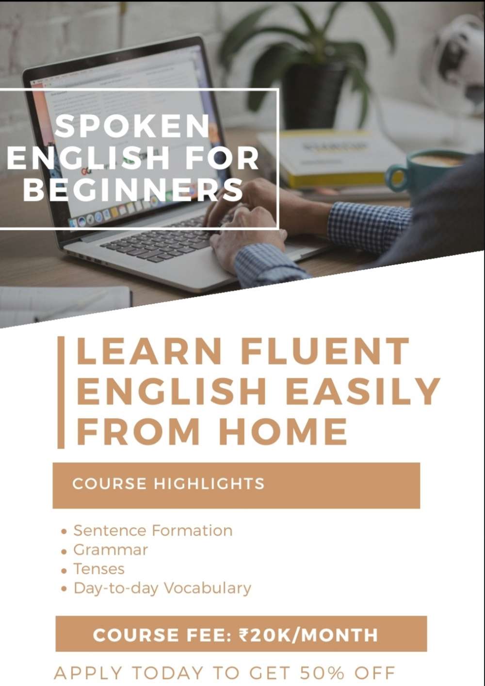 Spoken English Classes for beginners using tried and tested, but easy to understand, methods. It is the ONLY ONLINE SPOKEN ENGLISH course which provides one-on-one problem solving facility.