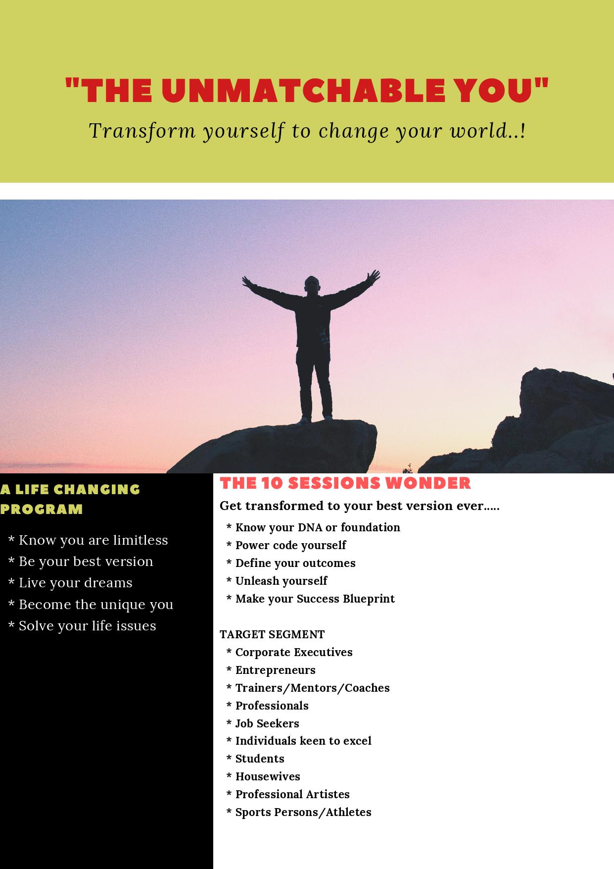 A 10 session Zoom/Skype transformational program to achieve professional peak performance and overall excellence in all areas of life by becoming your best version...!